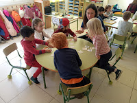 Com sabeu, aquest 2n Trimestre ens distribuïm per grups: anglès (contes i jocs en anglès), català i/o castellà (contes, rimes, comunicació oral...), jocs a l'aula (memory, construccions, jocs de motricitat fina, jocs de lletres, noms, etc.). A més, amb aquests dies de sol i bon temps, els grups van rotant i tenim la possibilitat de fer-ho en algun espai del pati, una manera molt més agradable de jugar i aprendre.